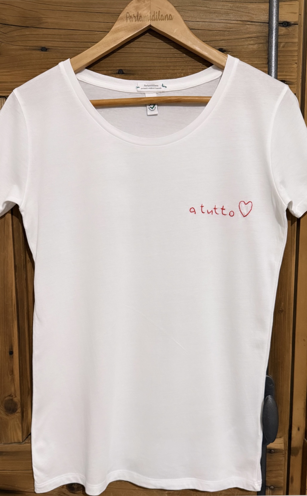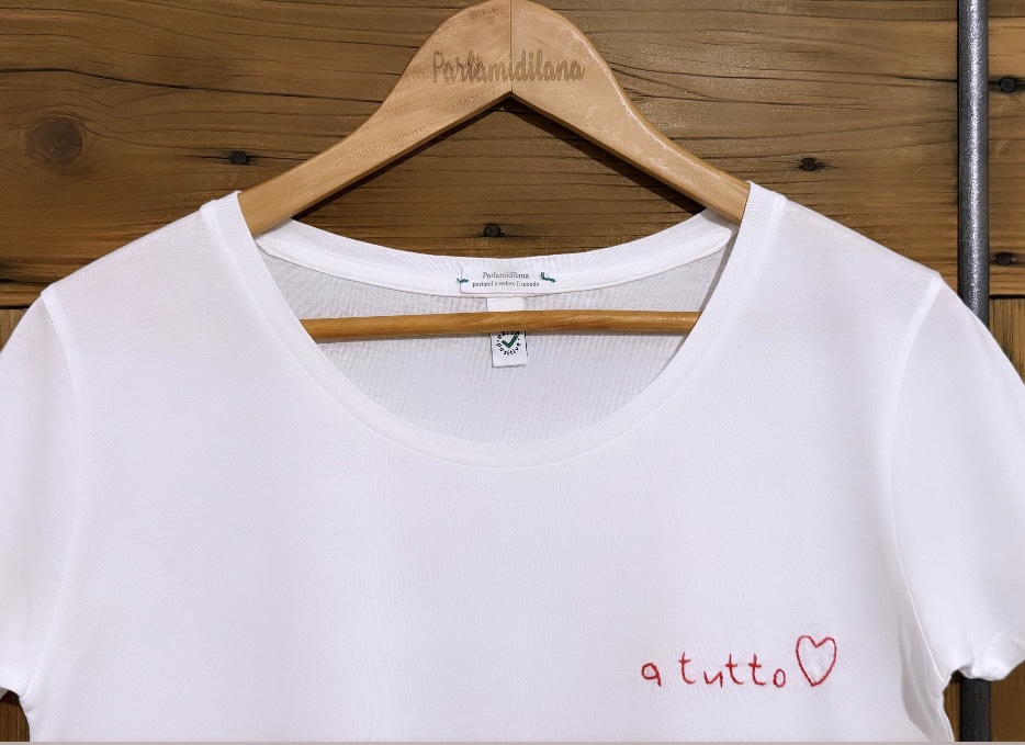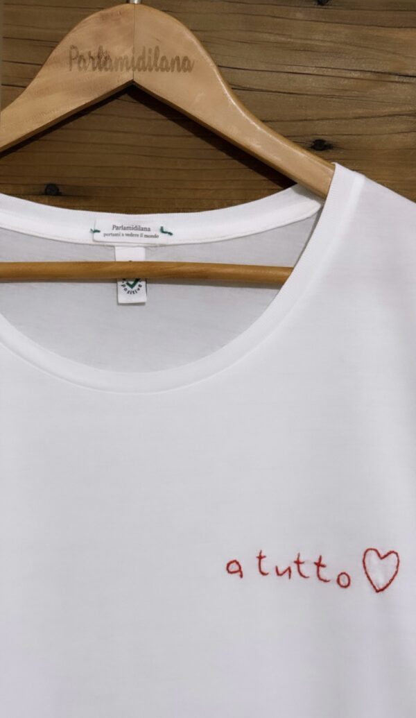 Tag: 100% cotone BIO, a tutto ♥, BIO, bio certificato, made in trentino, parlamidilana, ricamata a mano, ricamo a mano, t shirt 100% cotone BIO, tshirt