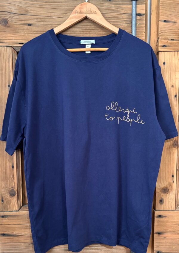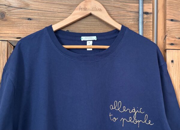 ALLERGIC TO PEOPLE – XL UNISEX BIO BLU (LIMITED EDITION) ricamata a mano 100% cotone BIO.