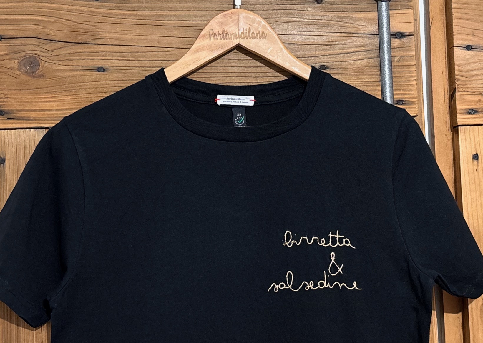 BIRRETTA & SALSEDINE – XS UNISEX BIO (Nera) ricamata a mano 100% cotone BIO.
