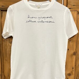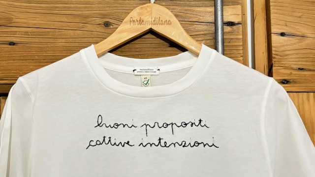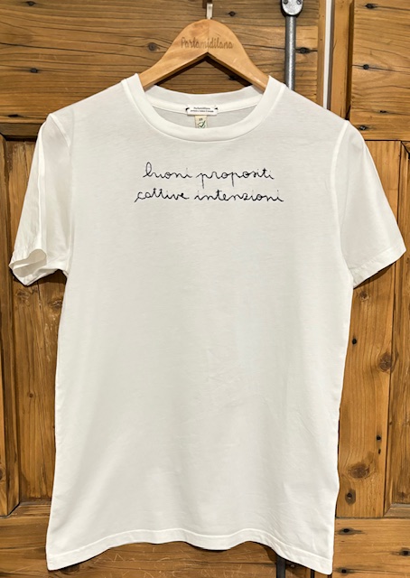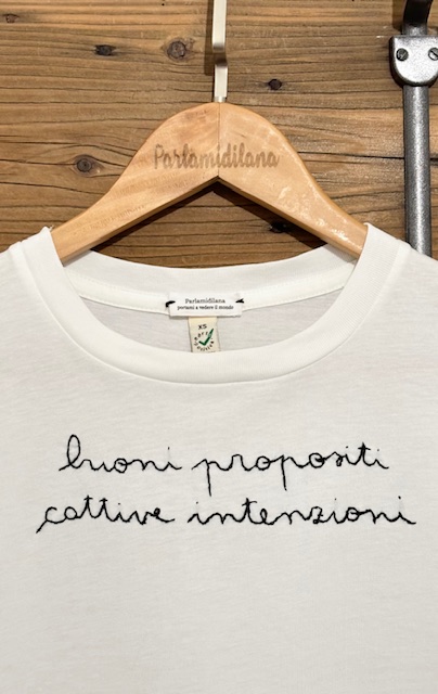 BUONI PROPOSITI CATTIVE INTENZIONI – XS UNISEX (Panna) ricamata a mano 100% cotone BIO.