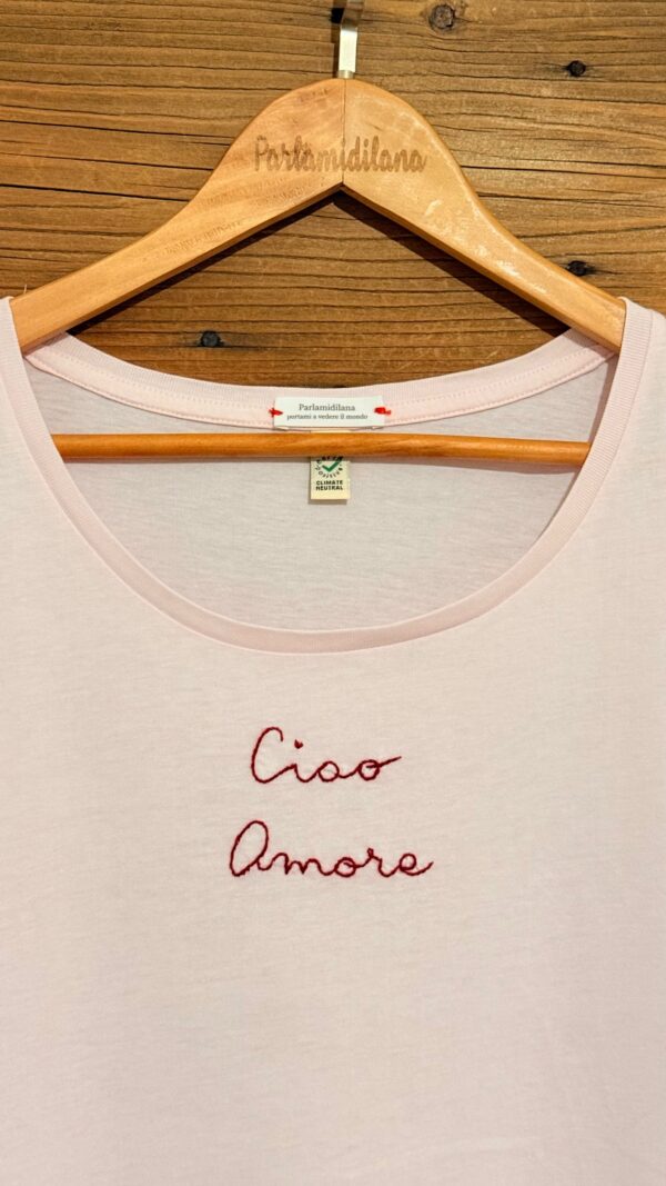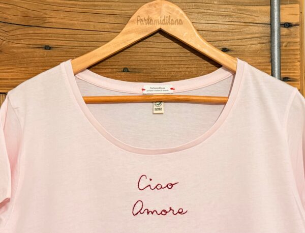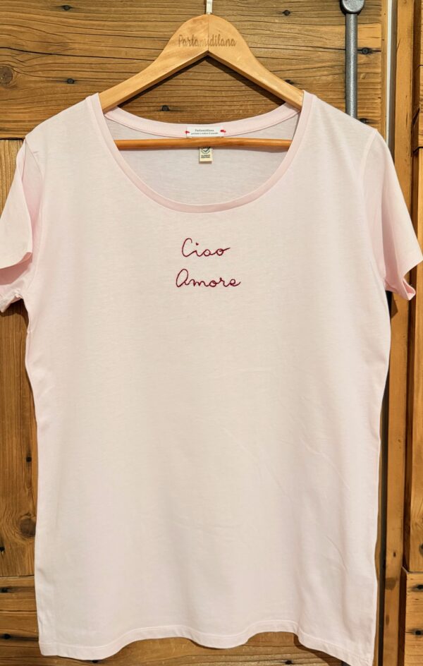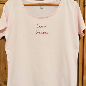 CIAO AMORE – XL WOMAN BIO ROSA (LIMITED EDITION) ricamata a mano 100% cotone BIO.