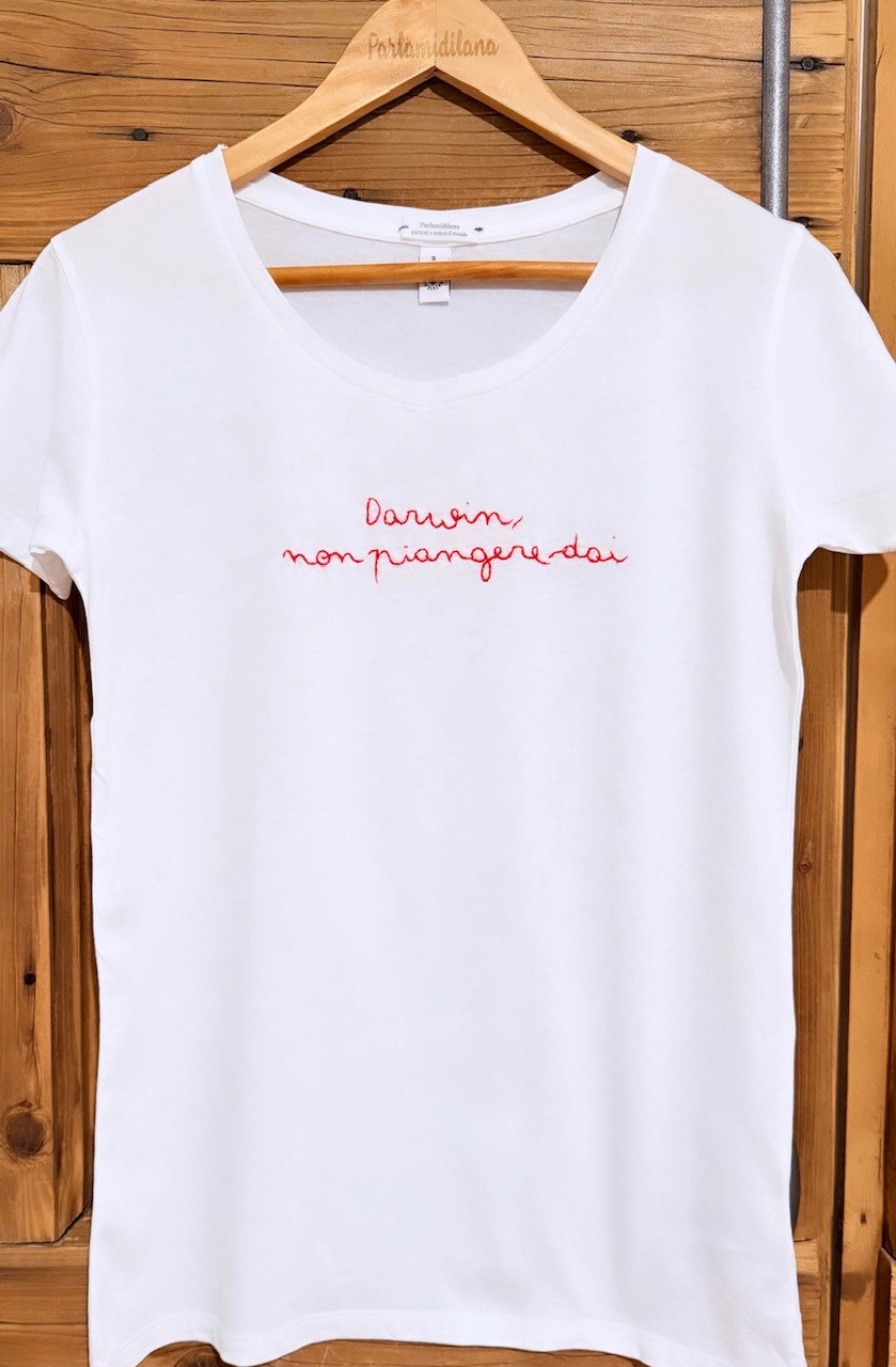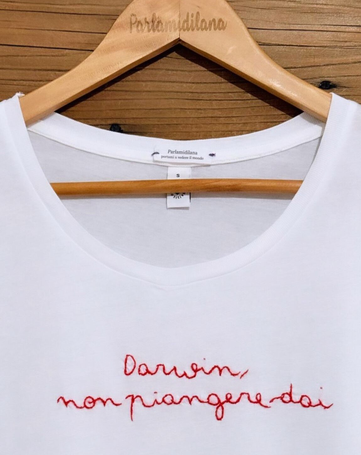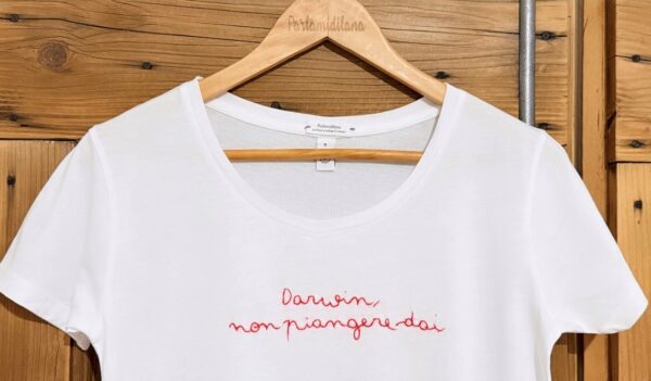 Tag: 100% cotone BIO, BIO, bio certificato, darwin, darwin non piangere dai, made in trentino, parlamidilana, ricamata a mano, ricamo a mano, t shirt 100% cotone BIO, tshirt