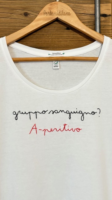 Tag: 100% cotone BIO, BIO, bio certificato, gruppo sanguigno?a-peritivo, made in trentino, parlamidilana, ricamata a mano, ricamo a mano, t shirt 100% cotone BIO, tshirt