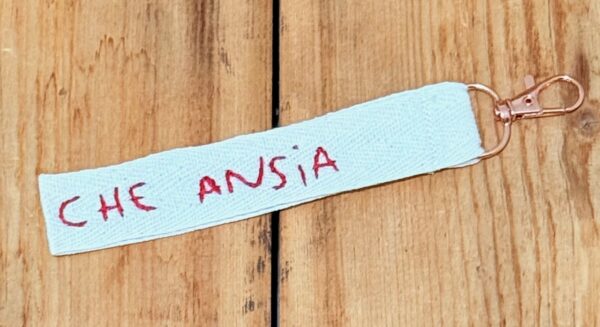 PORTACHIAVI “CHE ANSIA” in corsivo ricamato a mano