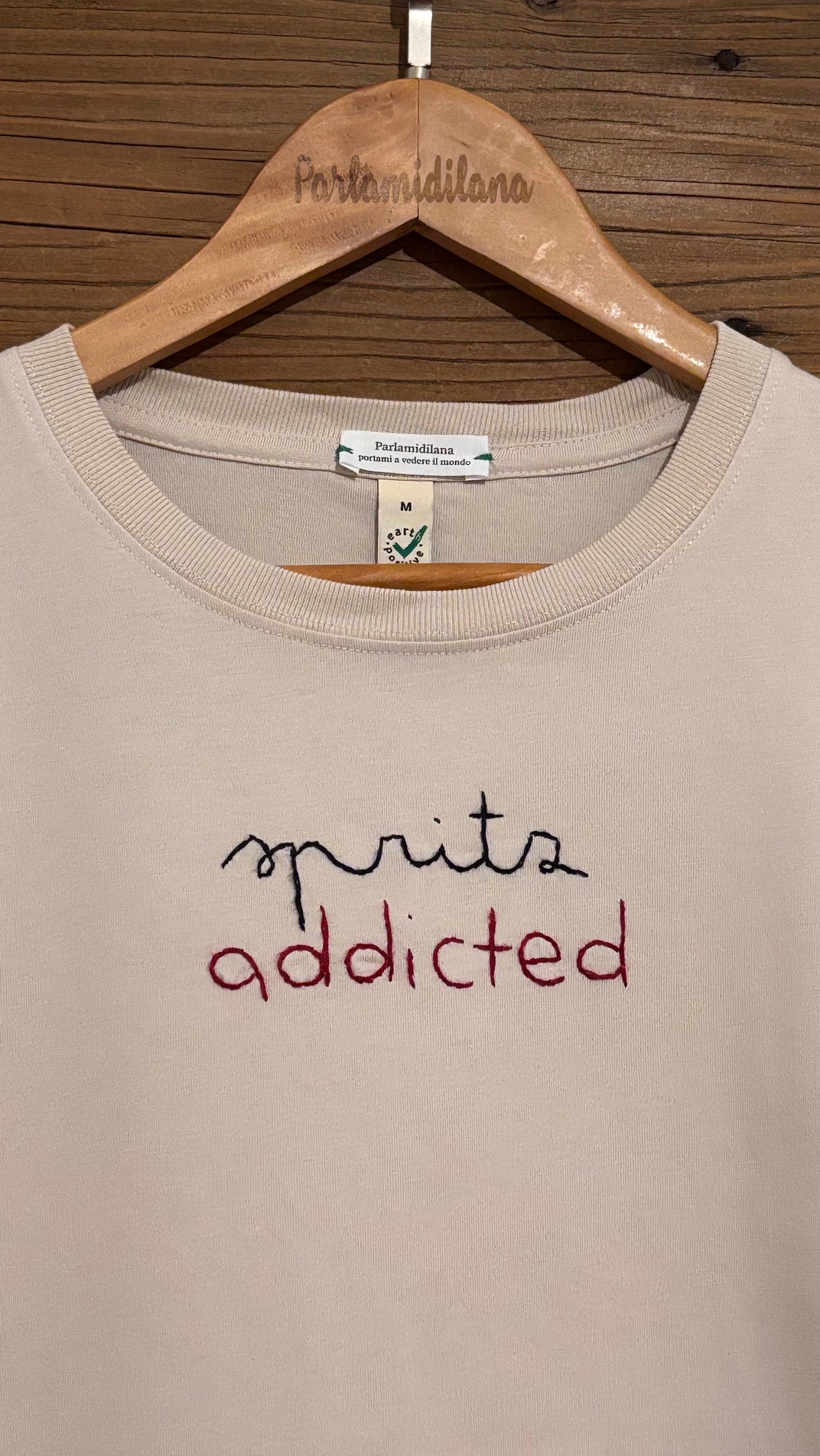 SPRITZ ADDICTED – M UNISEX BIO SABBIA (LIMITED EDITION PREMIUM JERSEY) ricamata a mano 100% cotone BIO.