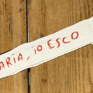 PORTACHIAVI COLOR PANNA “MARIA, IO ESCO ” ricamato a mano con doppia fettuccina